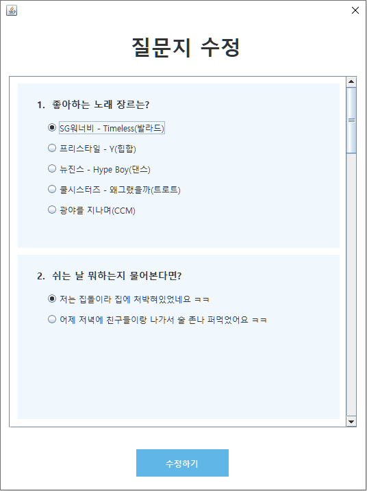 - 친구와 서로를 얼마나 잘 알고 있는지를 알아갈 수 있는 QnA 게임