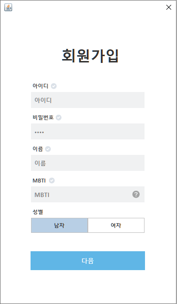 - 로그인, 회원가입, 마이페이지 UI 구현 및 비지니스 로직 구현