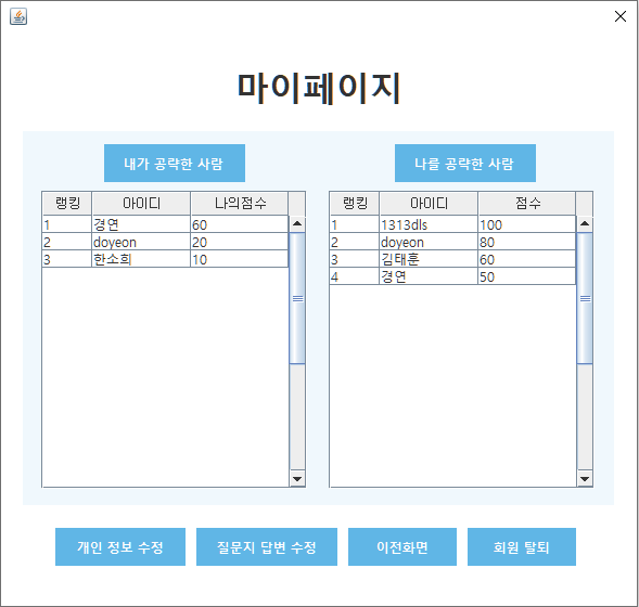 게임에서는 친구의 성향을 유추하여, 이를 토대로 점수 및 랭킹 확인