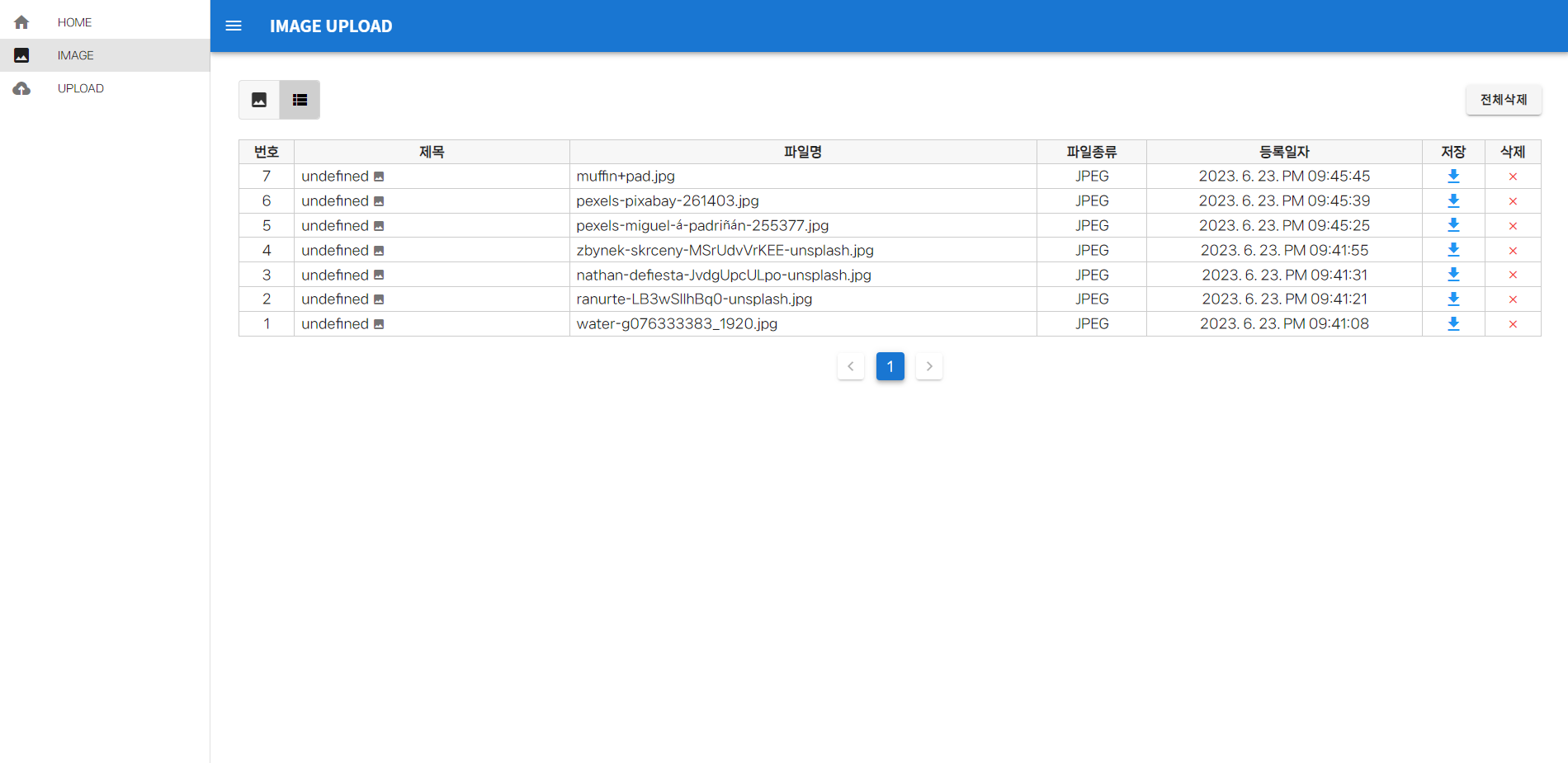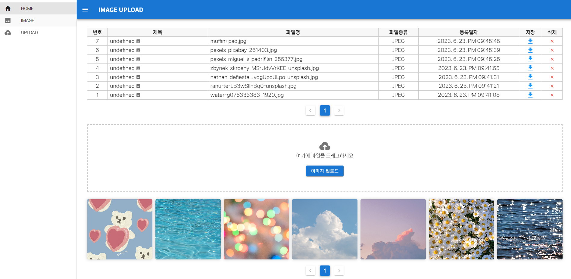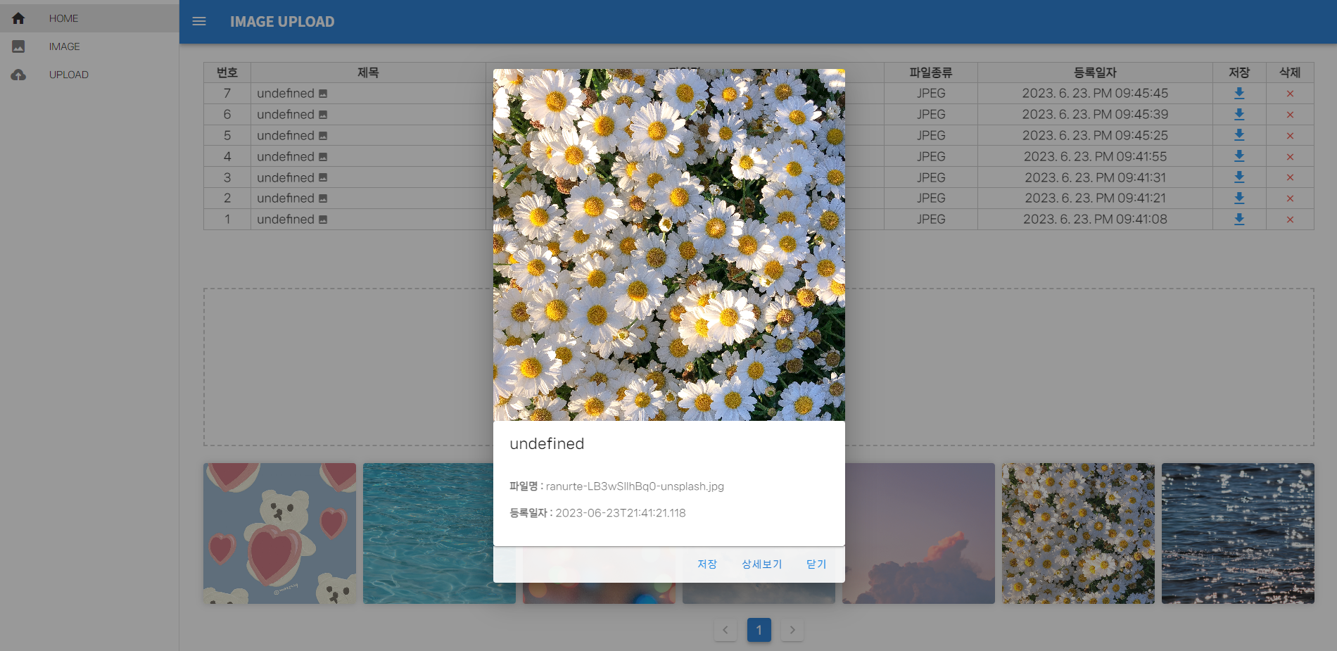 - 업로드된 이미지 목록을 확인할 수 있는 table