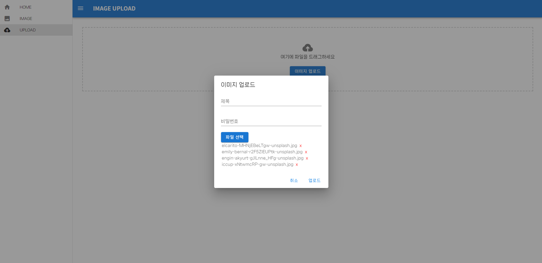 | 설명 | 여러 파일을 동시에 업로드 |