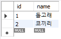 , name varchar(10) -- 이름 가변길이문자열(길이제한10)