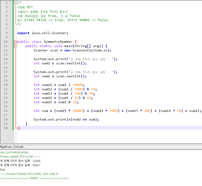 서로 좌우대칭인 경우 true, 그 외 false 출력하기