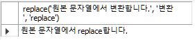 select replace('원본 문자열에서 변환합니다.', '변환', 'replace');
