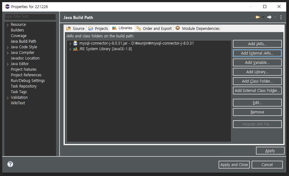 이클립스에서 JDBC(Java DataBase Connecitiviy) 등록