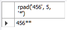 select rpad('456', 5, '*'); -- 5는 만들고자하는 문자길이 // 길이 모자라면 오른쪽을 '*'으로 채우기