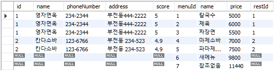 -- 조건을 따져 null값일때, -1 아닐경우 restId // if-else문과 비슷