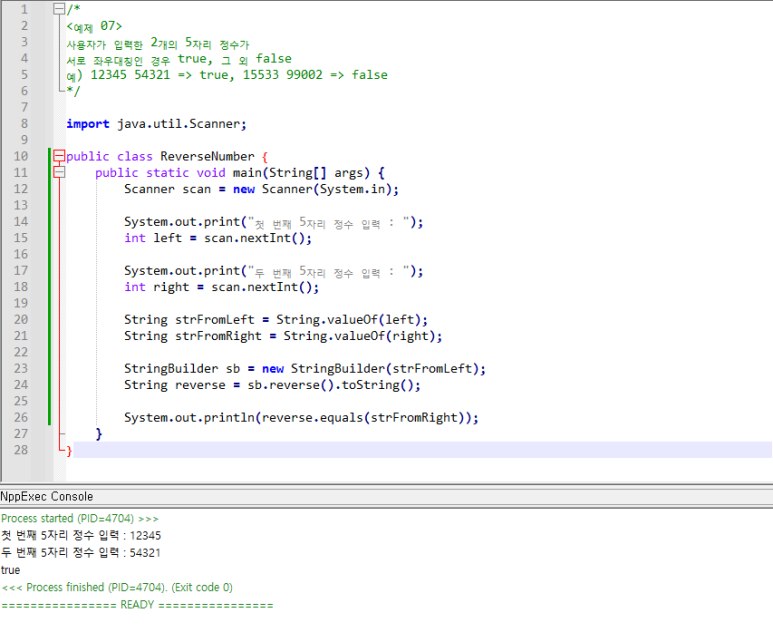 서로 좌우대칭인 경우 true, 그 외 false 출력하기