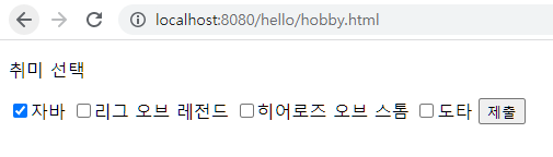 <label><input name="hobby" type="checkbox" value="java"/>자바</label>