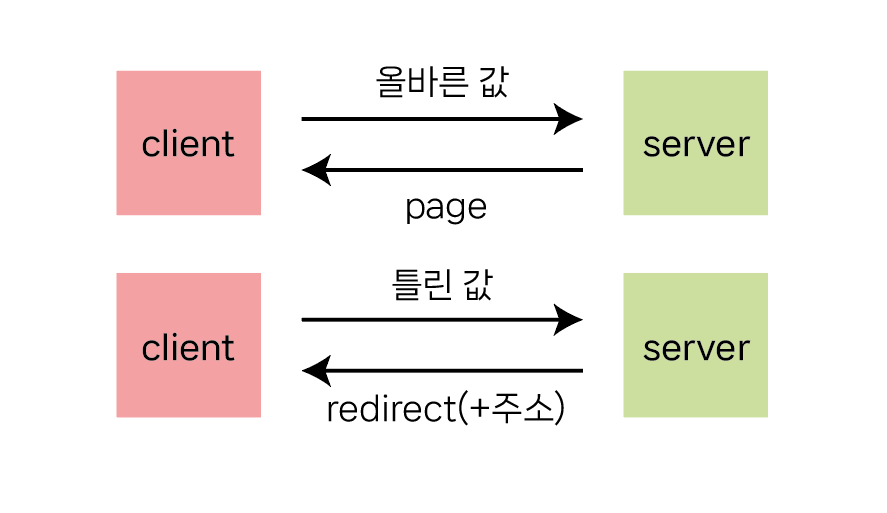 리다이렉트는 해당주소를 다시 요청하라는 명령이며, 웹 서버가 웹 브라우저에게 다른 페이지로 이동하라고 응답하는 기능이다.