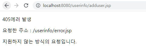 +) 응답 코드 405 : 요청한 페이지는 있으나 동작하지 않는다.