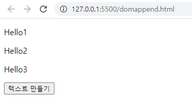 | document.createElement(HTML요소) | 지정된 HTML 요소를 생성함. |