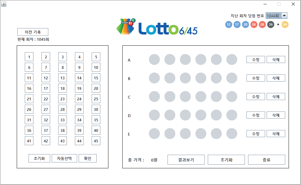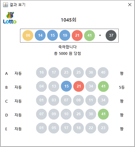 - 가상 Lotto 번호 추첨 및 확인 Windows 환경 GUI 프로그램